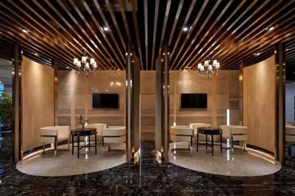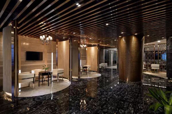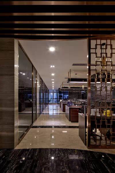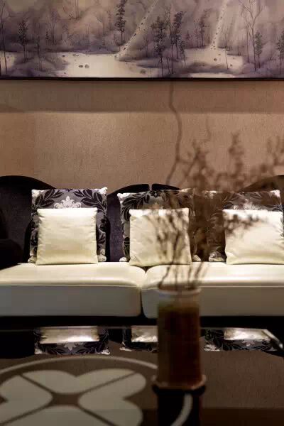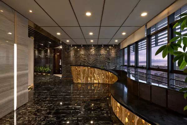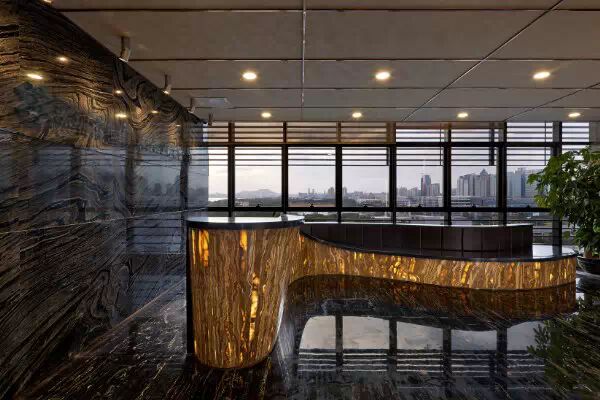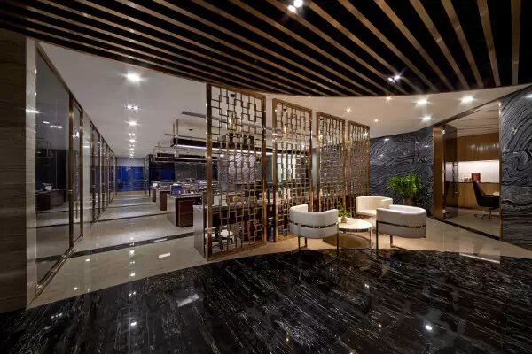 视野穿过前厅接待区,似前台非前台,似沙发又非沙发,似景观又非景观.....一个艺术延展的造型,在物体和空间上创建出一种特殊的连结。用流动的思维来应用和创造出流动、多元、非对称平衡、模糊等空间形象。