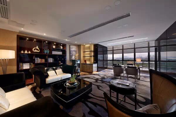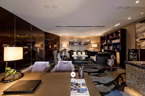 总裁办公室低调奢华的空间设计,质感厚重的家具、柔和的灯光使空间变得涵养深湛,现代时尚品味的气质铺垫在每个空间的每个角落,都市新贵的氛围由此而生。