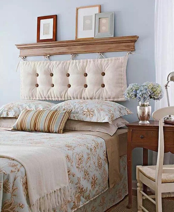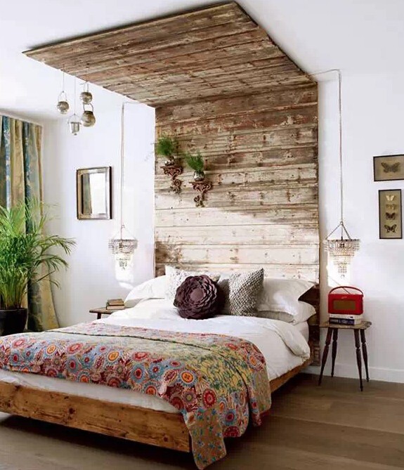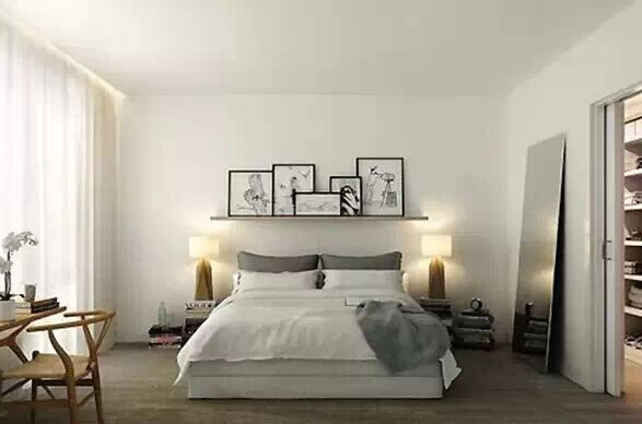 床上头那块大大的墙壁经常会被忽略掉,如果是你,会折腾点啥呢?一幅抽象画、一片照片墙、一个置物架,还是其他的什么?
